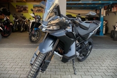 800MT-X jest naszpikowany najlepszymi technologiami wspomagającymi jazdę, zapewniającymi doskonałą kontrolę i bezpieczeństwo. Wyposażono go w sprzęgło antyhoppingowe, ABS, trzy tryby jazdy, tempomat, quickshifter oraz kontrolę trakcji (TCS) z 6-osiowym czujnikiem IMU od Boscha. Dodatkowo znajdziemy tu również amortyzator skrętu oraz monitor ciśnienia w oponach. Dzięki tym rozwiązaniom możesz pewnie poruszać się zarówno po trudnym terenie, jak i po gładkich autostradach, mając pełne wsparcie nowoczesnych systemów bezpieczeństwa.