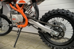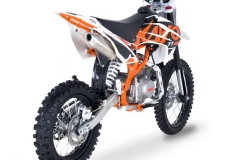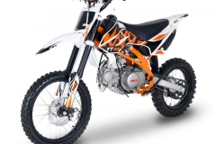 Pit bike KAYO 125 TT został stworzony z myślą o starszych dzieciach, młodzieży i dorosłych. Mocny silnik i duże koła w rozmiarze 17 cali z przodu i 14 cali z tyłu z terenowymi oponami to połączenie skazane na sukces. Spisze się jako rekreacyjna maszyna dla początkujących, ale także w amatorskich zawodach.
