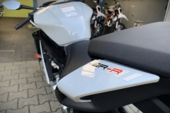☛ Estetyczna esencja super wyścigówki to coś więcej niż tylko przyspieszenie. Elementy wyścigowe są obecne wszędzie w konstrukcji. Kontynuując design rodziny SR, przedni kierunkowskaz jest zintegrowany z lusterkiem. Reflektory w kształcie boomerangu i zawieszona tylna lampa w kształcie przejściowym zawsze gotowe, by pokazać dynamiczną estetykę.